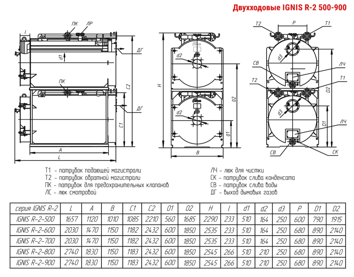 Технические характеристики модульного водогрейного трёхходового котла ARCUS IGNIS R-2-800