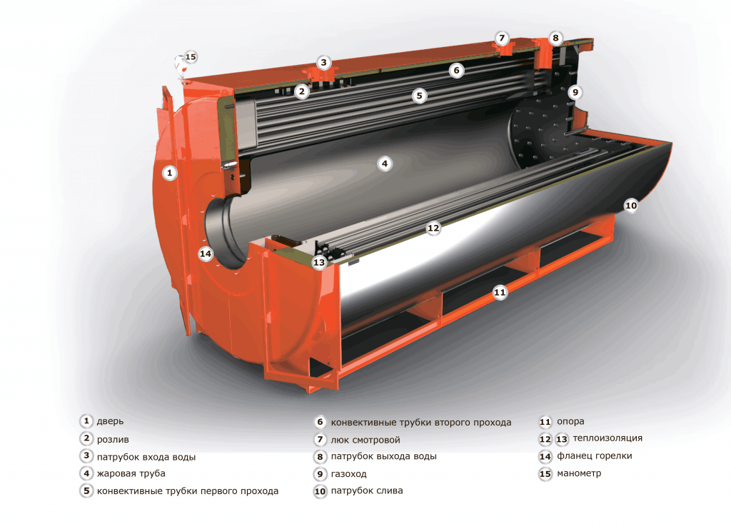 - низкое газодинамическое сопротивление котла позволяет подобрать оптимальное горелочное устройство;